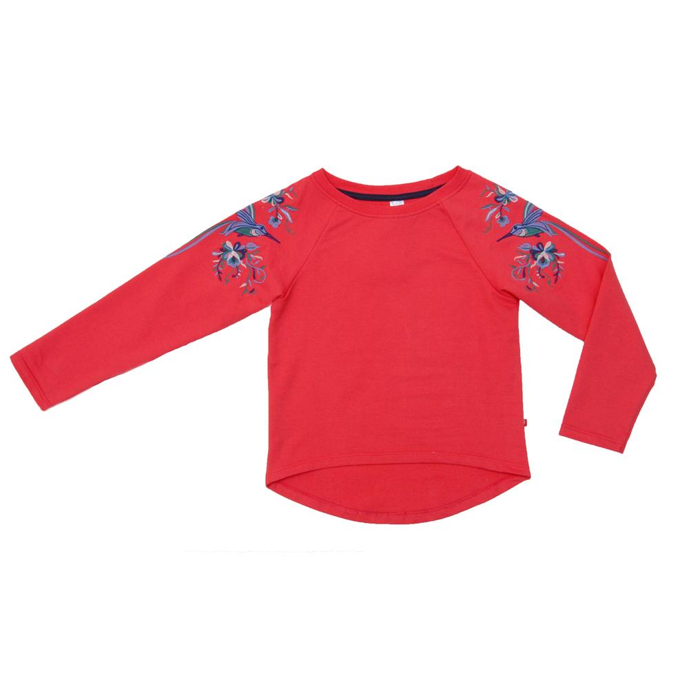 Stylish svitshot with embroidery for girls. A real gem of svitshota is embroidered on the forearms, it is now the main TREND 2017. On embroidery depicts exotic flowers and hummingbird. The rear part of the back svitshota has an extension. Svitshot made of knitted fabric bifilar footer quality (100% Cotton). It goes well with jeans. Svitshot presented in three colors: blue, red quality & korralovy; and gray.