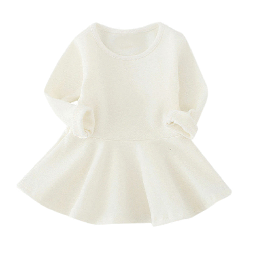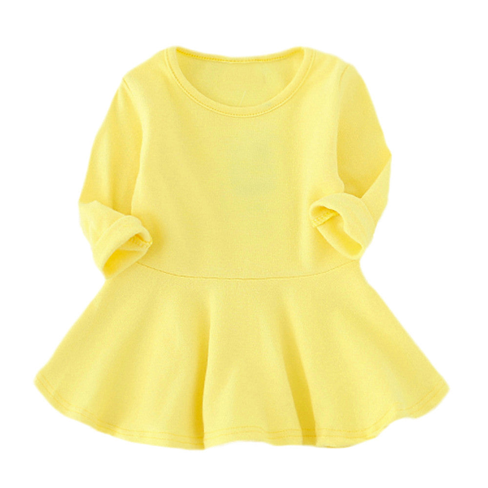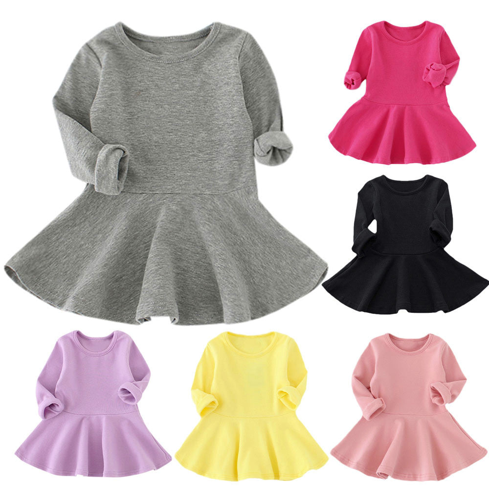 Baby Girls Candy Color Long Sleeve Solid Princess Casual Toddler Kids Dress